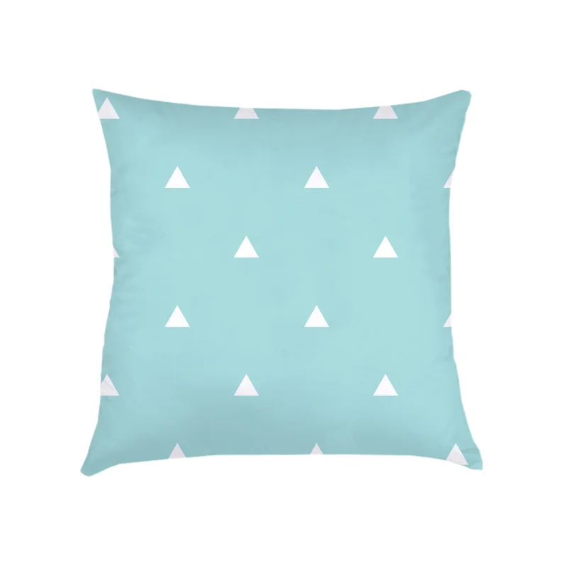ALMOFADA TRIANGULOS BRANCO FUNDO AZUL CLARO (CAPA + RECHEIO) | 50x50cm | 40x40cm