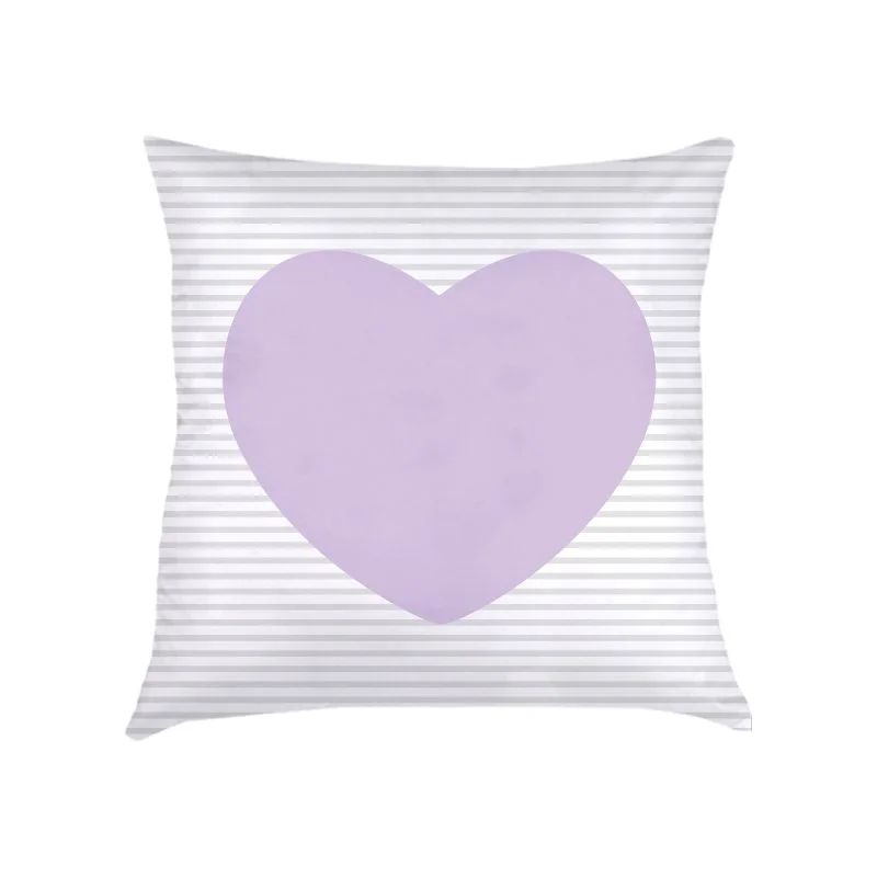 ALMOFADA coração fundo listrado (CAPA + RECHEIO) | lilás | 50x50cm | 40x40cm
