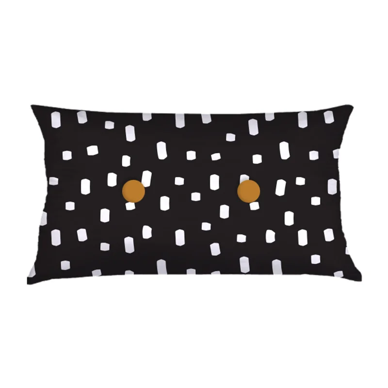 ALMOFADA BAGUETE DROPS (CAPA + RECHEIO) | PRETO E BOTÕES MOSTARDA | 48X28CM |