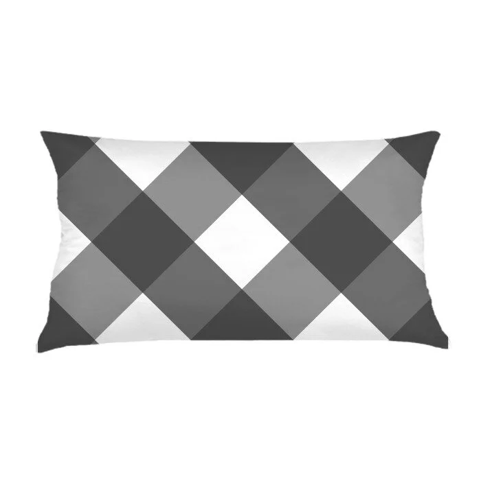 ALMOFADAS BAGUETE XADREZ (CAPA + RECHEIO) | PRETO E BRANCO | 50X30CM |
